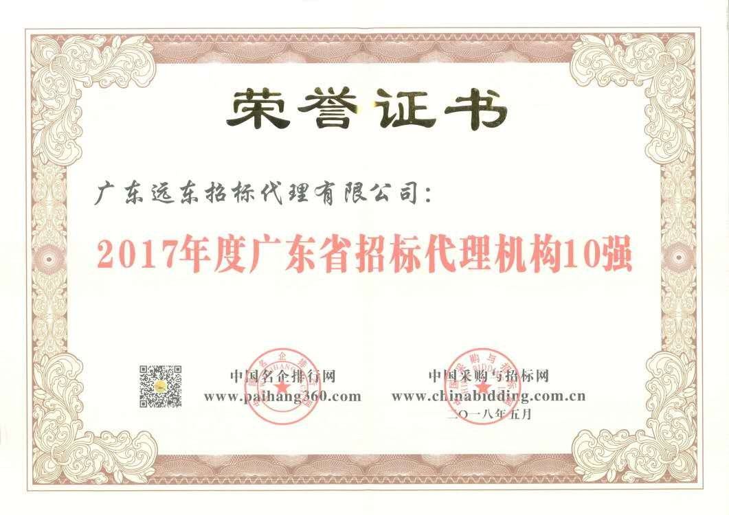 2017年廣東省招標(biāo)代理機(jī)構(gòu)10強(qiáng)